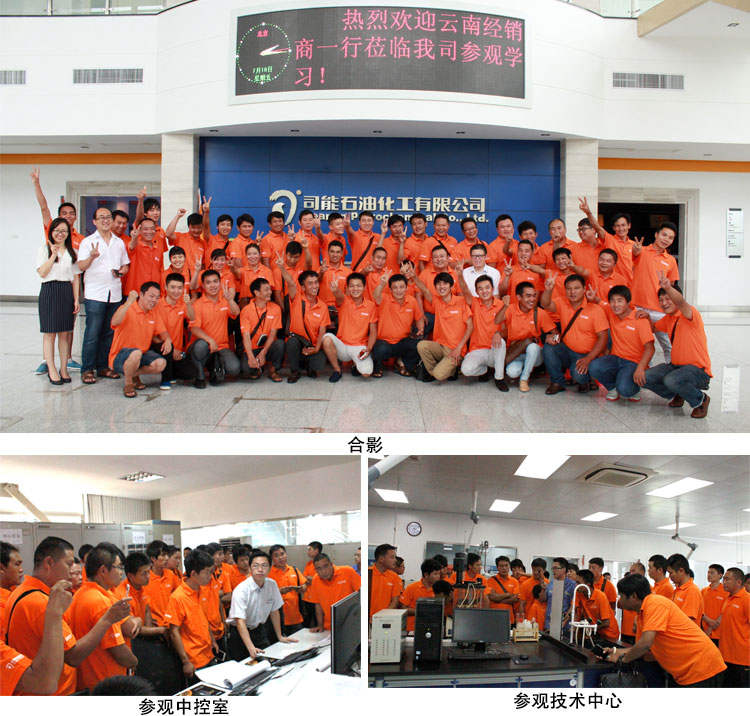 ? ? ? ? 昆明華墾商貿有限公司作為司能在昆明的經銷商,在總經理劉總的帶領下,快速發展,從去年合作開始,在市場中大力推廣司能品牌。而作為市場第一線,大多數二級客戶雖諳熟潤滑油行業,但是鮮少有機會到生產廠家去實際考察并進行系統的潤滑油知識培訓。此次昆明華墾商貿有限公司組織二級客戶及業務員培訓參觀,既是一次向他們展示我司企業形象及品牌知名度的良好機會,也是客戶進一步深入了解司能潤滑油生產能力及技術水平的有利時機。在參觀和培訓的過程中,大家對司能深厚的企業文化,先進的生產技術以及近年來快速發展的良好態勢表示了濃厚的興趣和認同,并對進一步做強做大司能表現出了極大的熱情和信心。