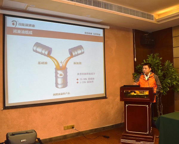 ? ? ? ? 在司能產(chǎn)品線及油品知識介紹方面,司能溧陽應(yīng)用研究所主任吳浩明指出,司能品牌的原料全部來來自國際知名品牌的基礎(chǔ)油和添加劑,每道工序都經(jīng)過嚴(yán)苛的檢驗(yàn)流程,所以大家可以放心大膽的使用。并對明年優(yōu)化后的產(chǎn)品線進(jìn)行著重介紹。